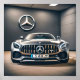 A commanding poster featuring a Mercedes car with a prominent, oversized Mercedes logo, exuding an aura of automotive excellence and brand pride in any space.