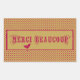 Fanciful "thank you very much" in French is done is wonderful distressed and scroll letters in red on a mustard yellow background. A little bird decorates the framed design.