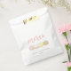 Fill these cute favor bags with sweet treats and thank your bridal shower guests in Parisian chic style. Design features "Merci" in peachy pink handwritten style lettering and a row of four delectable French macarons in pastel hues of pink, ivory, yellow and tan. Customize with the bride to be's name and date of shower in chic gray typeface.