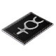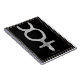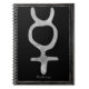 Mercury hammered silver stylized planet symbol in a fine hand drawn silver double line frame. This notebook or journal or writing pad has a title of The Journey, which can be changed to personalize your own story.