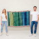 A quality printed throw has its advantages. This is a much finer weave throw than its loopier cousins, and though lighter, it is worth the investment for custom room accessorizing. The back is much prettier than the typical brown, and the fringe on the long sides very vivid, the selvage nicely done. Before photographing, I washed the throw in cold water, delicate, with a thicker woven throw the same size. On tumble dry low, this throw was dry in half the time as the other. This is a very practical quality if you use throws for furniture covers or to wrap up in frequently. The sleekness of the fabric makes it a great layer for accenting or protecting without the feeling of sitting on too much stuff. Perfect for napping or when you feel a light chill coming on. The color printing is beautiful and on this fabric, matched the design and color of my Photoshop image. This is an advantage for blending room fabrics and colors. The fringe on the short sides prints the colors from the design image and therefore varies from the side fringe. I streaked a white fractal line through the plaid pattern to give the illusion of weaving. This printed as crisp as an illusory thread, and put some white in the short side fringe, showing another advantage of print vs loomed- for artistic purposes, line lines, detail, and color integrity can be planned and preserved. My loomed throws have color limitations and more of a needlepoint texture. Print throws reproduce an exact image. The throw felt a little stiff straight out of the package, but this went away in the first delicate wash. Of course I searched the wash water for ink or bleeding and there was none.