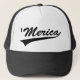 It's the very cool, Black 'Merica swoosh style Mesh Snap Back Trucker Hat! An awesome hat for any Patriotic U.S. Holiday!