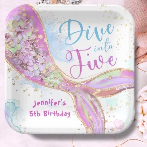Complete your Mermaid Theme Party with our 'Dive into Five' Mermaid 5th Birthday Paper Plates! Don't settle for the ordinary. Elevate your little one's birthday party with these lovely plates, order yours today, and make your event extraordinary!