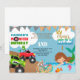 Mermaid and monster trucks siblings invitation. invitation