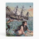 This magical mermaid image is based on an antique postcard, showing mermaids with their catch of the day!