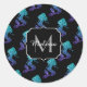 Mermaid aqua blue ombre Sparkles pattern Monogram Classic Round Sticker