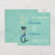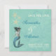 Mermaid & Starfish Beach Coastal Save The Date Cards. Gorgeous aqua blue background with the beautiful image of a mermaid with a blue tail. Images also of three starfish and a subtle blue floral background. This is a delightful and romantic save the date for your beach or vacation wedding or for a marriage near the ocean or the sea. Easily customizable for you to add all your own details. Each save the date comes complete with a white envelope.