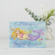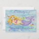 Pretty mermaid, surrounded by shells, starfish, and jellyfish, invites guests to a girl's birthday party.