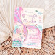 Make a splash with this enchanting Under the Sea mermaid birthday invitation, featuring a glittery mermaid tail in pink, purple, and blue surrounded by seashells, coral, and starfish. The soft watercolor background adds a whimsical touch, perfect for ocean-themed celebrations. Personalize with your childs name, age, and party details to create a magical keepsake. Ideal for girls birthdays, this mermaid invitation sets the tone for a fun and unforgettable underwater adventure.