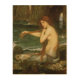 A Mermaid (1901) by JW Waterhouse is a vintage Victorian Era Pre-Raphaelite fine art portrait painting. A mermaid is brushing her hair on the beach by the seashore. A mermaid is a mythological aquatic creature that is half human and half fish.