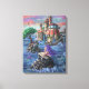If you love mermaids, then this painting is for you. Mermaid Castle painted by Traci Van Wagoner features a mermaid with purple hair in front and a mermaid with green hair sunning herself on rock islands while another mermaid with pink hair swims in the ocean in front of a castle with a purple, orange and yellow sunset sky behind. This beautiful and whimsical fantasy art makes a great gift and a stunning decoration for your office or home.