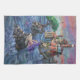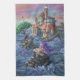 If you love mermaids, then this painting is for you. Mermaid Castle painted by Traci Van Wagoner features a mermaid with purple hair in front and a mermaid with green hair sunning herself on rock islands while another mermaid with pink hair swims in the ocean in front of a castle with a purple, orange and yellow sunset sky behind. This beautiful and whimsical fantasy art makes a great gift and a stunning decoration for your office or home.