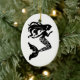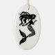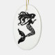 Christmas ornament shown in a oval shape with a fancy mermaid print in black and white. Customize this item or buy as is.
