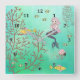 Square clock for female kids. The design is a mermaid with pretty pink hair, fish, sea grasses, and a green sea. Wonderful design for a kids room. The design is permanent, but, you can add a name. Thanks to the Hungryjpeg, and Creative Fabrica for some of the elements in the design.