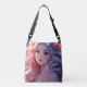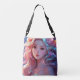 This graceful pastel mermaid is a symbol of imagination, softness, and sea-born wonder. Her long flowing hair shimmers in delicate tones of pink, lavender, and aquamarine — adorned with tiny flowers that reflect her bond with nature and dreams. She wears a glowing scale top in iridescent hues and a fine golden necklace, adding elegance and magic to her presence.