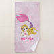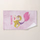 Pink and Gold Resting Mermaid Design bath Towel Set with customizable text.
