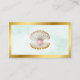 Sleeping baby mermaid in a gold clam shell surrounded by pearls. Pink tail fin and gold & pink tiara. Banner on shell reads "Precious". Mint background.