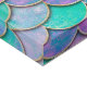 Mermaid fish scale wave japanese seamless pattern. Watercolor hand drawn teal purple golden background. Watercolour scales shaped texture. Paper cut style, 3d effect.