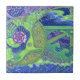 Ceramic Tile featuring surreal artwork, underwater fantasy in blue, green and purple colors. Spirit of water merging with the gigantic green fish in the surrealistic marine landscape with huge waves, full moon and starry sky. Acrylic painting on paper.