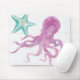 A soft watercolor, portrait of a purple octopus and a teal starfish. Artist: Jenaya Jackson