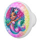 This ceramic cabinet knob is shown in white with a cute colorful mermaid girl print.