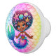 This ceramic cabinet knob is shown in white with a cute colorful mermaid girl print.