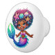 This ceramic cabinet knob is shown in white with a cute colorful mermaid girl print.