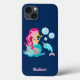 Customize this beautiful pink haired mermaid girls iPhone case by adding your name. Cute mermaid design with pretty underwater ocean narwhal and under the sea bubbles. Cute gift for a girl who loves the beach or pool.