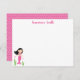 This custom stationery for kids features a sweet mermaid in pink. She has black hair and swims with her pink starfish friend among the seaweed. This stationery can be personalized with a name or text of your choice. Feel free to change the font and font color if you'd like. The backside features a pink scalloped pattern.