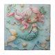 A charming design for a tile featuring a little girl mermaid in pastel colors.