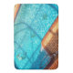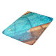 There’s a mermaid in the swimming pool, along with a few other sea creatures on this Bath Mat. The original photograph is an overhead view of an aqua blue pool edged with marine blue and terracotta tile, and a curvy steel railing. The afternoon sunlight throws shadows on the sparkling water. The mermaid is happy.