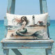Mermaid Lighthouse Coastal Watercolor Scene Lumbar Pillow