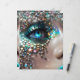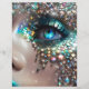 A closeup view of a mermaid’s shimmery eye makeup and sparkling face jewels. Personalize with initials.