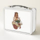 This is a standard metal lunchbox that appears to work just fine. We designed this box ourselves with an uploaded photo and custom text on the front and back. It looks absolutely beautiful except the front of the lunchbox is not centered like it shows in the photo. The print borders don't align with the inset flat part of the box where the preview photo online showed it perfectly centered in there. The back looks nice and centered though.