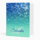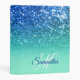 Mermaid Mint Green and Blue Glitter Ombre Monogram Mini Binder