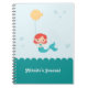 This sweet Journal cover has a Mermaid or Under the Sea themed party. It features a cute Mermaid character holding a balloon in the shape of a fish and a few bubbles floating around. The scallop border gives the idea of waves. Modern and stylish design great for an adorable child. Add a name and make it extra special. Look for available coordinating products.