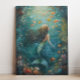 Cute and magical mermaid painting features a cute mermaid swimming under the water with cute orange fish. Original art by Nicole.