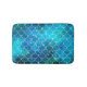 A fluffy bath mat featuring a digitally created mermaid scallop pattern layered over top of a blue and green galaxy background. Perfect for a girls bathroom who loves mermaids!