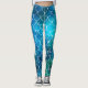 A pair of leggings featuring a beautiful mermaid inspired scallop pattern in white over a blue and green galaxy.