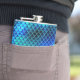 Add your own name or monogram to customise this girly hip flask design of a beautiful mermaid with sky blue, flowing hair and graceful tail. She is surrounded by glossy pearls on a shiny background of mermaid scales in colors ranging from deep navy blue through aqua and teal. Search ID600 to see other products with this design.
