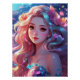This graceful pastel mermaid is a symbol of imagination, softness, and sea-born wonder. Her long flowing hair shimmers in delicate tones of pink, lavender, and aquamarine — adorned with tiny flowers that reflect her bond with nature and dreams. She wears a glowing scale top in iridescent hues and a fine golden necklace, adding elegance and magic to her presence.