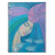 Notebook featuring beautiful dreaming mermaid princess with blue hair, bunch of fish around her.