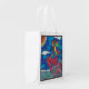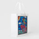 I own a lot of reusable grocery bags, but this one holds its box shape and simply stands up on its own even if there is nothing in it. Its stiffer than your regular reusable bag too, and the material is water resistant. I poured water on the exterior and it didn't penetrate inside to the other side. I'm buying a couple more. Wish I knew how durable these bags were or I would have purchased a few more with my initial order. I also like how it folds and buttons up when not in use, making it easy to put into a handbag or luggage. I haven't used this bag yet, as I purchased it for travel use, like when you're at the airport and need to small sturdy bag to place any airport purchases in, like food, souvenirs etc. I can tell you when you first see this bag, it looks very cheap, but after closer inspection of the material and the seams its a very sturdy reusable bag. I tested it out by putting some really heavy objects inside and I could not observe any stress to the bag at all. Another thing I like about it, is the fact the medium size that this is makes it easy to just carry it in your hand without the bottom of the bag scraping the ground, like most other bags do when you're short. That alone, deserves 5 stars. I just wish there were more colors to choose from! The PDX Airport Carpet printing looks just like the photo, and using this bag during travel might be a conversation piece when/if a native from Oregon happens to see it.