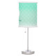 A lamp featuring an illustration of a sand dollar over a mermaid scale inspired background.