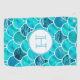 Aquamarine, mint green and turquoise colored girly mermaid scale pattern. The scales are watercolor painted and some filled with sea water as contrast. A white and blue sircle with your monogram letter in light blue.