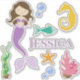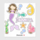 Girl's cute sticker set sheet with featuring a brunette mermaid, coral, fish and more. Personalize the name to read what you want. Use for crafts, gifts, decorations and more.