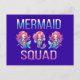 Mermaid postcard showing Trio of mermaids with rainbow colored hair and full tail showing,