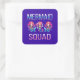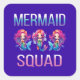 Mermaid stickers showing Trio of mermaids with rainbow colored hair and full tail showing, Great as a party favor for a mermaid themed party.