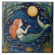 Mermaid Starry Night Sea Ocean Fairytale Navy Blue Ceramic Tile
