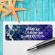 This address label design features a beautiful mermaid tail in light blue set against a background of sparkling mermaid scales in shades of blue and purple.